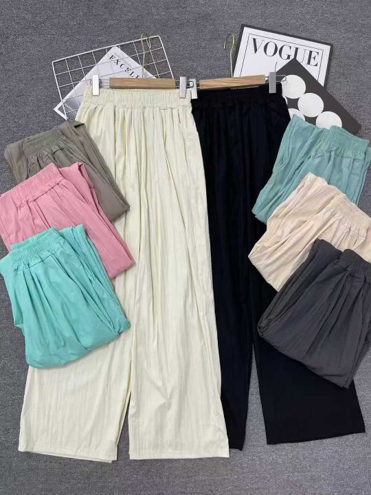 冰丝棉麻阔腿裤女夏季新款高腰慵懒垂感休闲山本裤云朵裤3600条全清8.8元分货+1 ,码数S到XXL ,有8个色,裤子有口袋,精品独立包装好面料~
