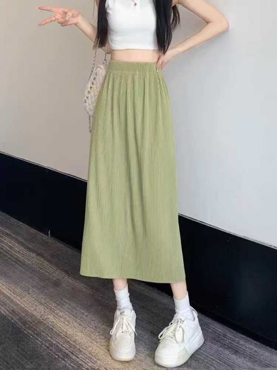 雪纺百褶半身裙女夏季新款松紧高腰垂感开叉a字中长裙 463件全清8.8元 分货+1 ,码数S到XXL,独立包装,单款5色,超级爆款半身裙