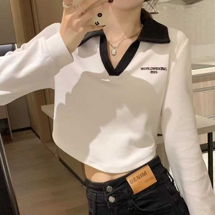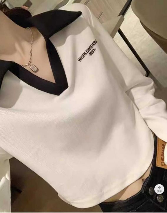 秋季新品撞色刺绣字母小清新百搭polo领针织套头毛衣,...