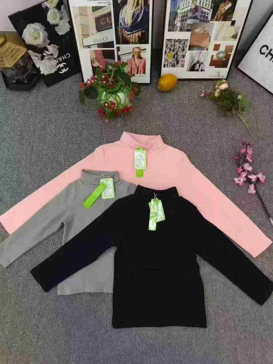 男女童棉高领纯棉打底衫,数量900件左右,尺码110--160,整款六个色,少部分有印花,面料柔软舒适,独立包装带吊牌,大货干净整洁