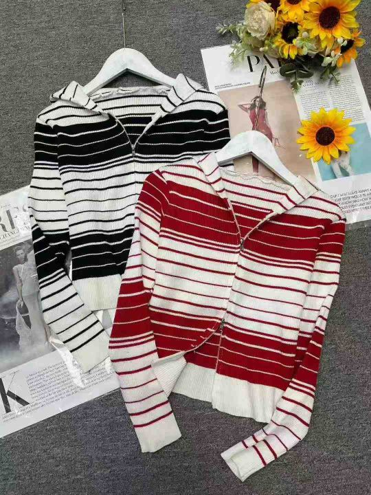 秋冬季新款弹力修身显瘦撞色条纹百搭双拉链连帽针织毛衣开衫,独立包装,均码面料软糯舒适弹力大,1150件,全清7.9元超低价秒杀!分货加一!