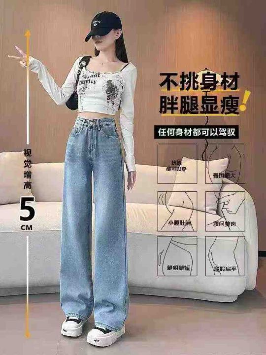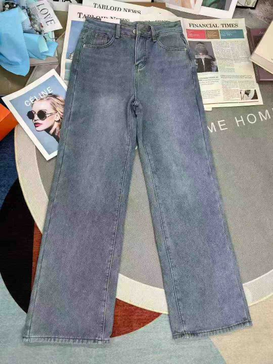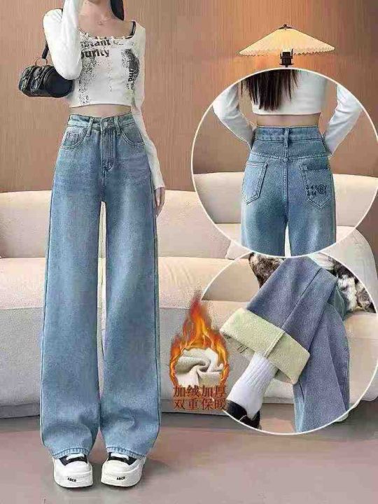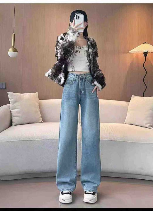 浅蓝高腰显瘦宽松阔腿加绒牛仔裤,单款单色,独立包装...