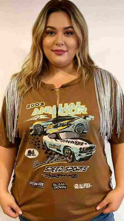 欧美大码印花流苏棉T恤700pcsSpicy girl Street hip-h...