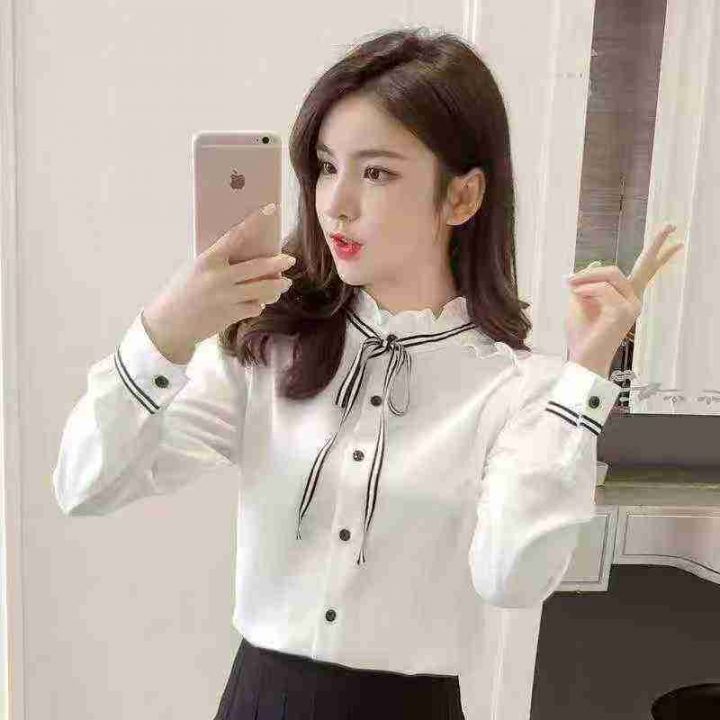 设计感别致绝美法式小衫2025春季新款宫廷风长袖上衣蝴蝶结衬衫女.独立包装S一3XL码.300件左右.全清6.8块