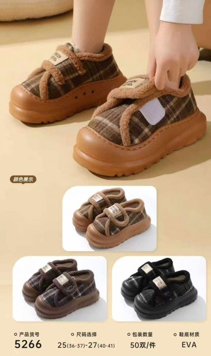 一件50双,复古格,魔术贴,保暖加绒防滑棉鞋加厚底,36-41码,混色混码清装