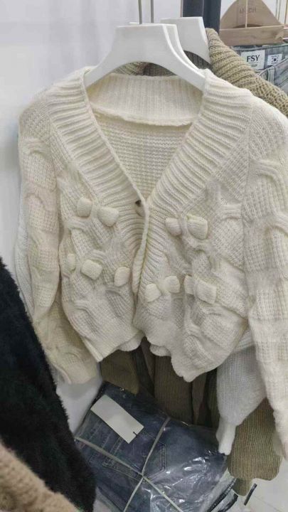 夏季新款时尚设计感拼色猫咪提花宽松慵懒风显瘦落肩针织小衫,独立包装,均...