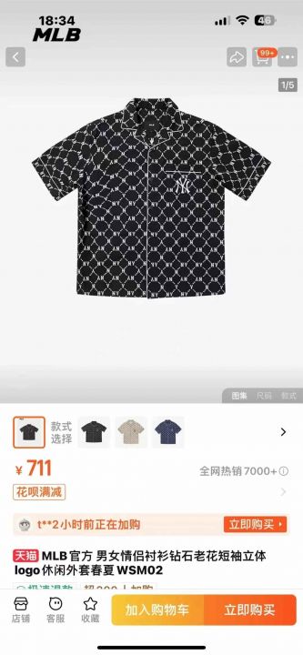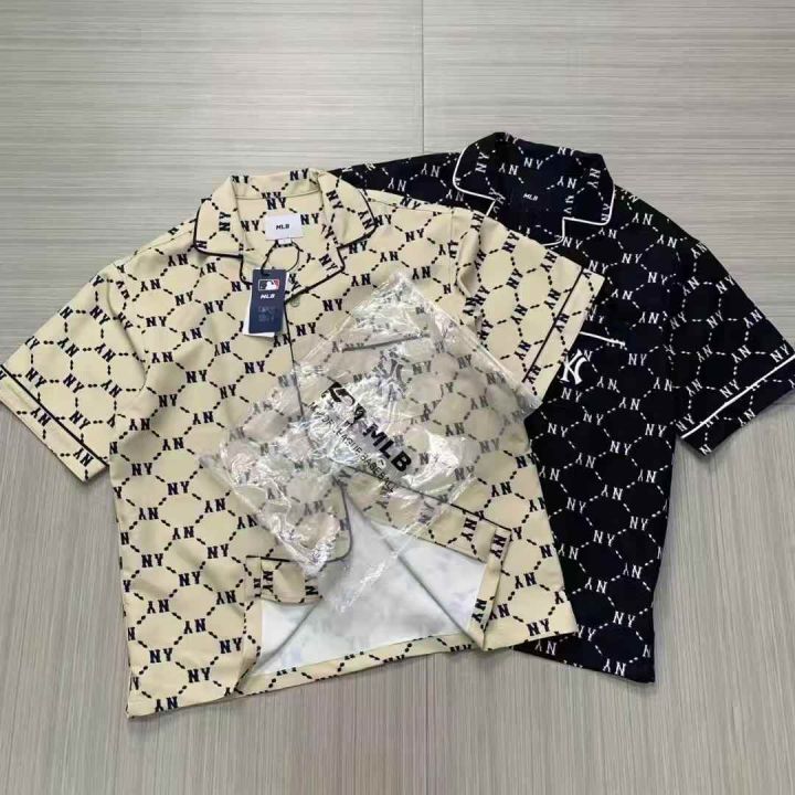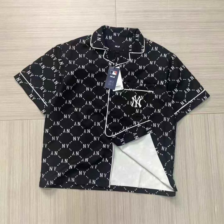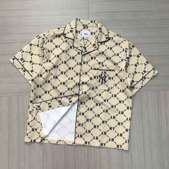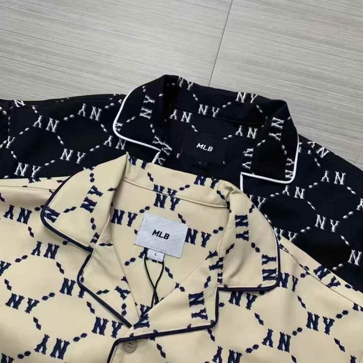 MLB官方 男女情侣衬衫钻石老花短袖立体logo休闲外套 S...