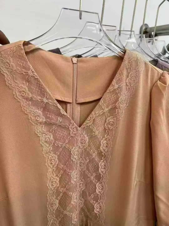 杭州高品质缎面连衣裙夏季新款中袖气质高端v领短袖中长连衣裙360条全清12.8元分货➕1元,码数M L 宽松版,单款5色,独立包装