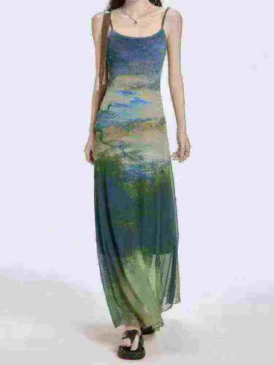 夏季新款法式复古扎染吊带连衣裙,独立包装,码数1-3-...