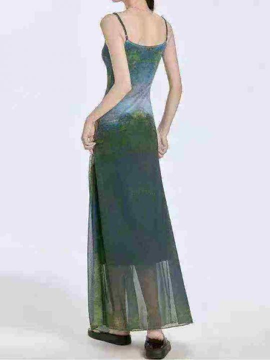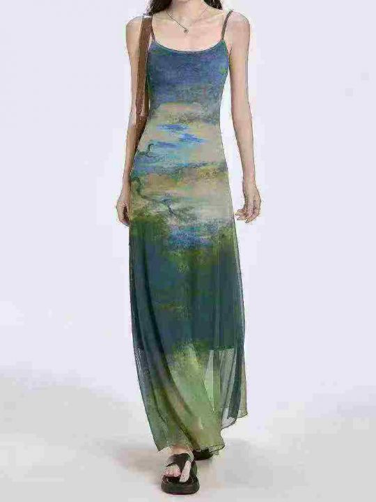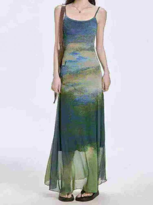 夏季新款法式复古扎染吊带连衣裙,独立包装,码数1-3-...