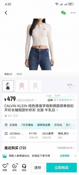 CK长袖开衫女款毛衣 S-L全码有清单。 货号:33064
