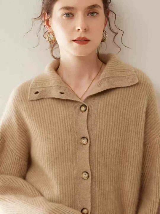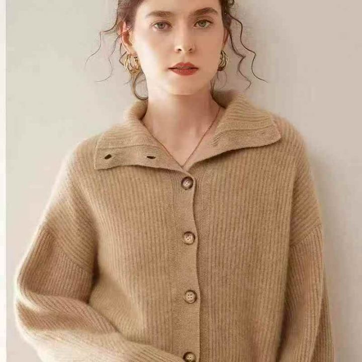 全清13.8,奥莱专柜高品质针织衫女100纯毛衣高端立领宽松加厚针织开衫外套,单款单色,颜色以图5为准,均码26件