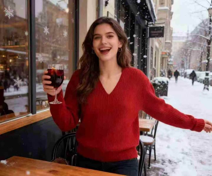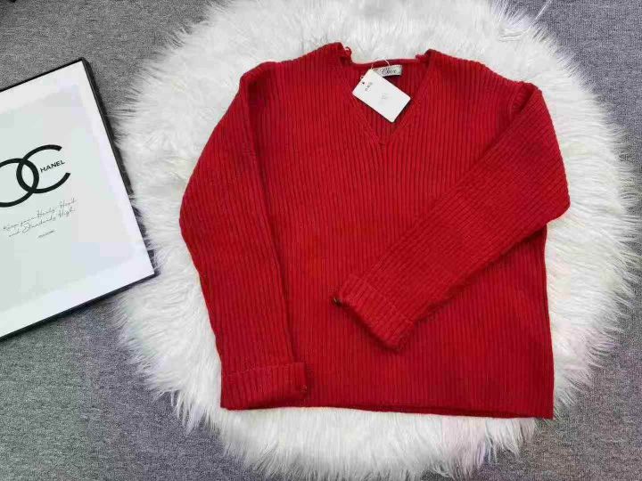 全清10.9,时尚气质慵懒风v领套头显瘦高端百搭毛衣圣诞红针织衫欧货上衣女,单款单色,均码18件,不分货。