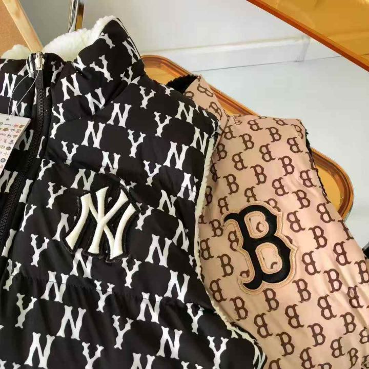 25ss MLB/ny/洋基队(双面穿)花满印官方男女情侣棉马甲羊羔绒两面穿运动时...