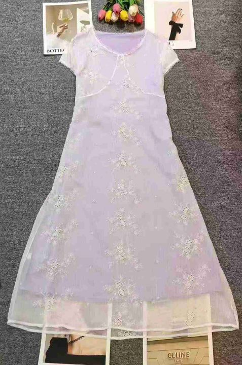 4600件高品质盛夏气质收腰显瘦修身长款连衣裙,工艺绣花,单款单色,独立包装,码数M-L。#连衣裙#大长裙#绣花连衣裙