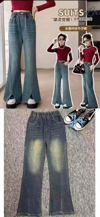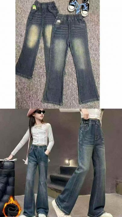 高品质青少年牛仔裤,高弹力洗水软牛仔面料,内里包边,数量3550条左右,码数140-180码,整首齐码,独立包装吊牌,一捆一手码,3个款,多图案,阔腿款,开叉款,喇叭款,阔腿款最多(3300条左右),可以挑款出➕1元,网络图供参考大概款式!