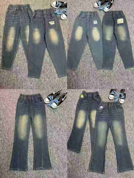 高品质青少年牛仔裤,高弹力洗水软牛仔面料,内里包边,数量3550条左右,码数140-180码,整首齐码,独立包装吊牌,一捆一手码,3个款,多图案,阔腿款,开叉款,喇叭款,阔腿款最多(3300条左右),可以挑款出➕1元,网络图供参考大概款式!