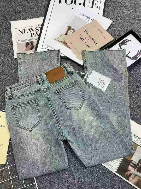 ☕️高弹力浅色毛边微喇叭牛仔裤女秋季新款高腰小个子...