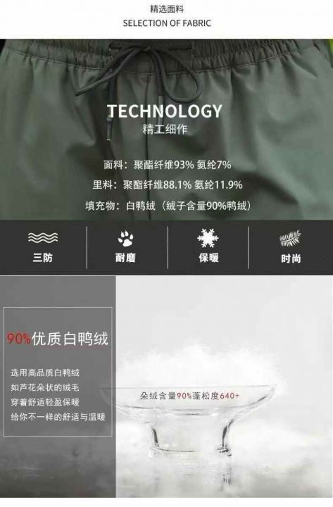新国标90白鸭绒羽绒裤,M—4XL,6500条,手提袋包装。...