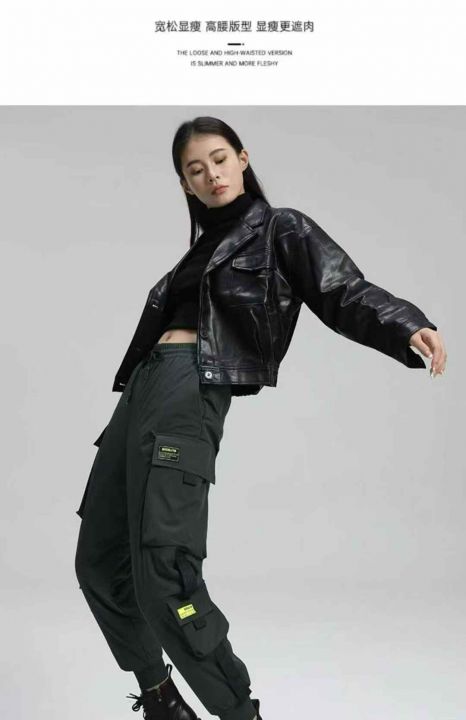 523条,港风休闲裤女2025夏季新款宽松阔腿裤薄款抽绳束脚拼接学生运动裤,...