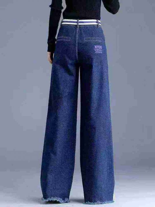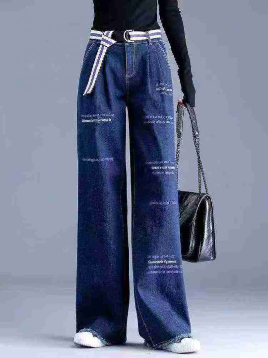 ☕️两色阔腿牛仔裤女直筒宽松裤子高腰甩裤新款大码大...