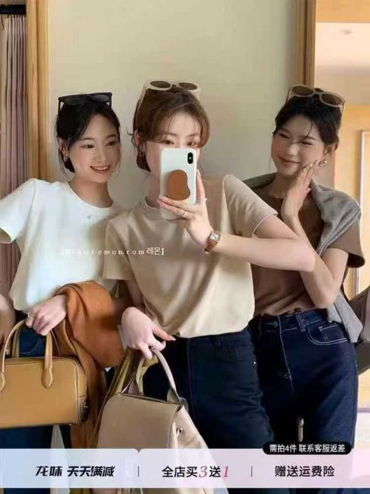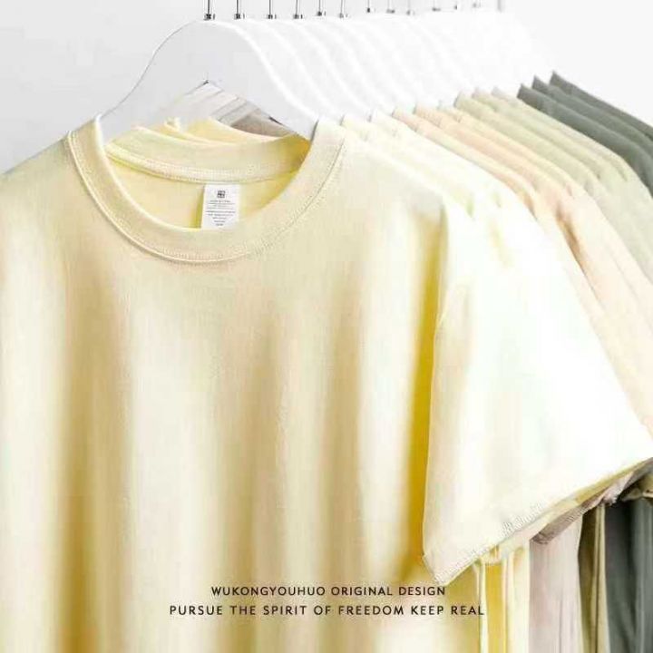 韩系超显白奶杏色短袖T230g双纱重磅美式纯棉短袖男女夏季圆领t恤纯色宽松打底衫8000件全清11.8 分货12.8 均码宽松版,10件一包装 天猫店品质做工