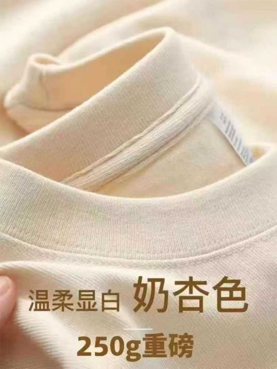 韩系超显白奶杏色短袖T230g双纱重磅美式纯棉短袖男女...