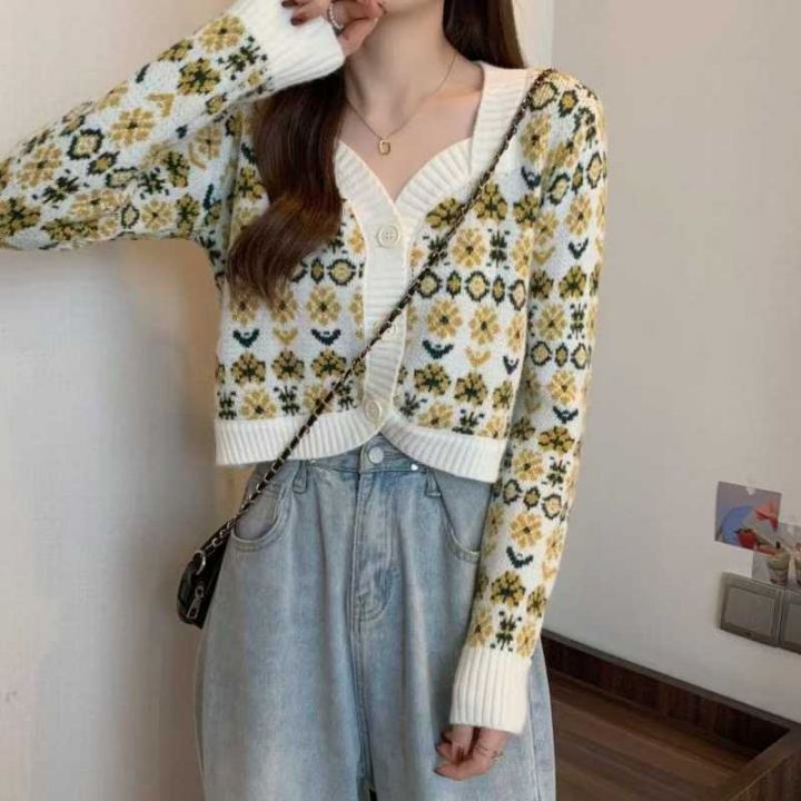 秋冬季新款小香风提花洋气加厚包芯纱短款毛衣开衫,独...