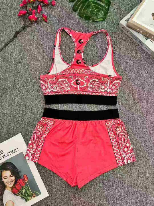 5.5清欧美跑步瑜伽健身印花背心短裤两件套,数量:160...