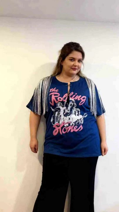 欧美大码印花流苏棉T恤700pcsSpicy girl Street hip-hop sexy fringe cotto...