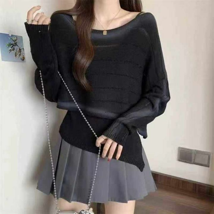 秋季新品美拉德色系宽松胖mm设计感长袖针织衫+冰丝吊带背心两件套,独立包...