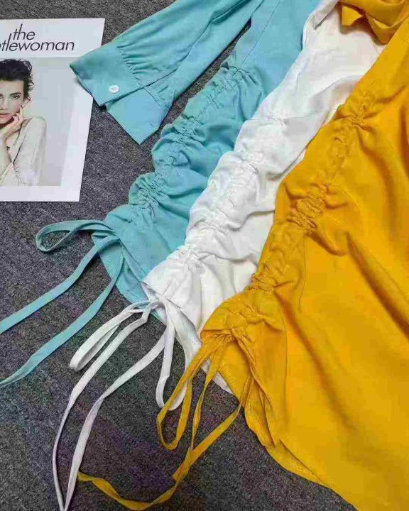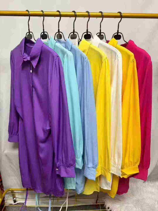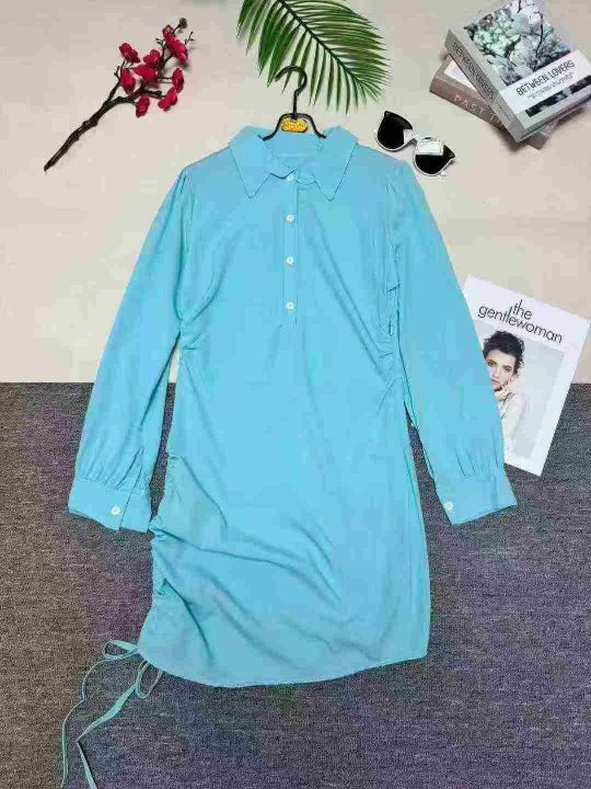 欧美时尚新款侧边抽绳纯色中长款衬衣连衣裙,数量1100条,码数S-XL,整款多色,侧边有拉链设计,品质好,有独立包装。