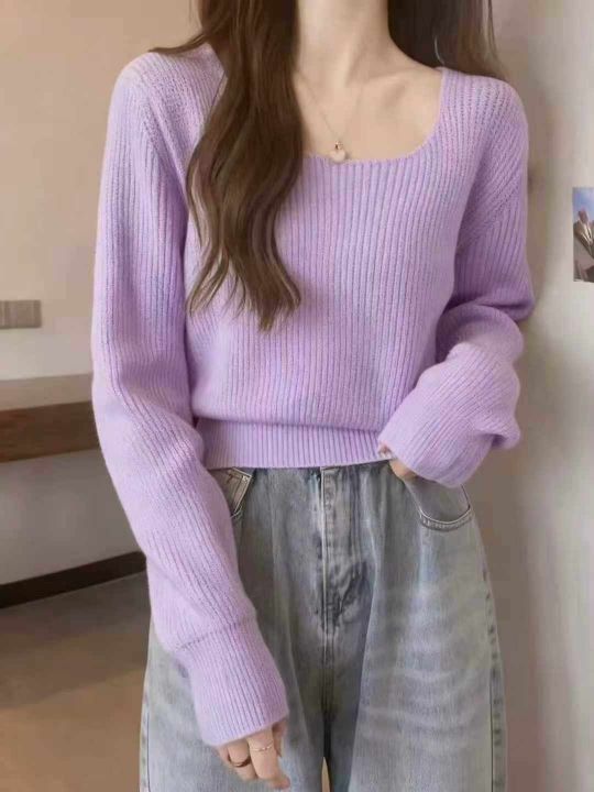 秋季新品方领高腰净版简约基础百搭套头毛衣, 独立包装,均码面料软糯舒适...