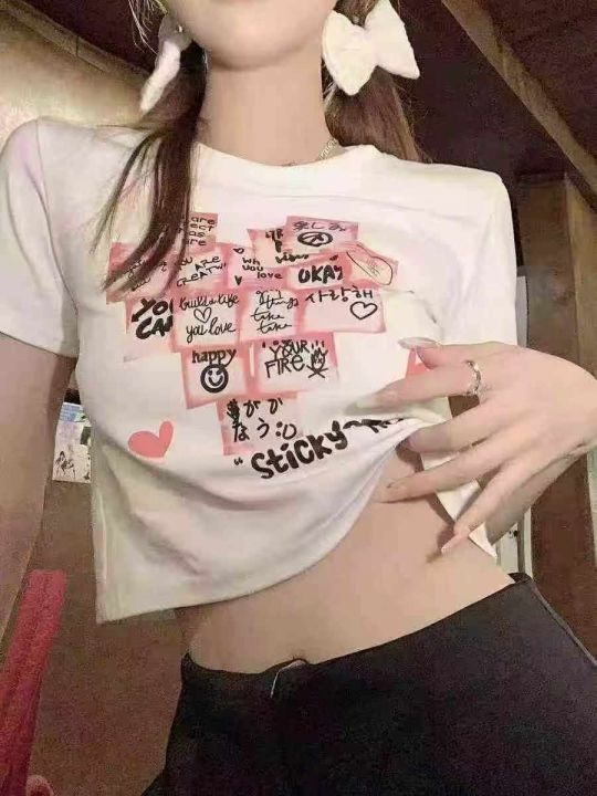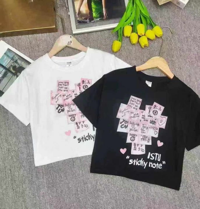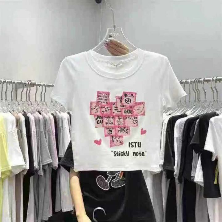 夏季新款爱心印花圆领甜美百搭辣妹短袖短款棉T恤,独立包装,后领包领,码数1-4,数量433件,分货加1,货号0912#35