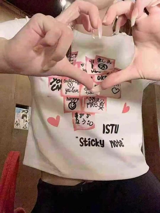 全清价6.9夏季新款爱心印花圆领甜美百搭辣妹短袖短款...