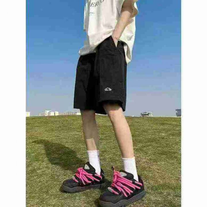 运动五分冰丝裤,四面弹透气夏季宽松休闲拉链袋刺绣花...