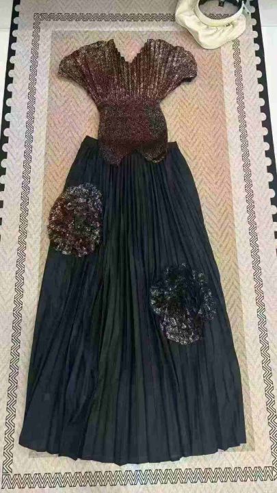 75套左右三宅轻奢重工烫金大盘花长半裙褶皱两件套收腰...