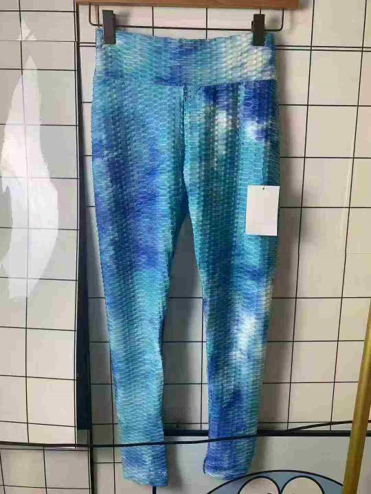 4.5清588件女高腰扎染性感提花瑜伽健身蜜桃翘臀泡泡裤女收腹提臀打底长裤户外跑步健身修身运动 码数S-ⅩL 独立包装