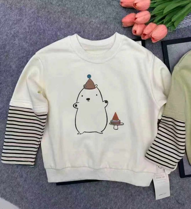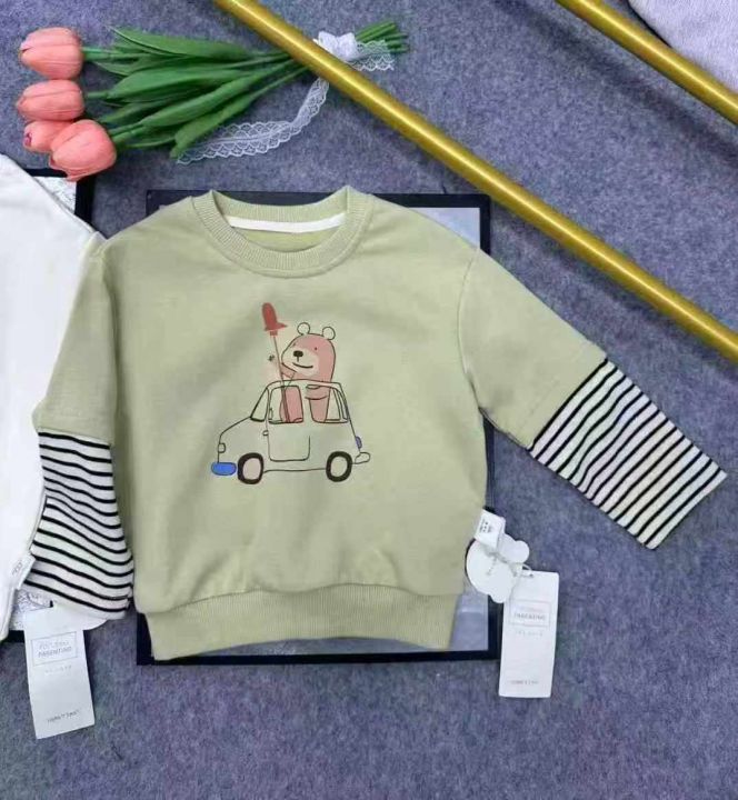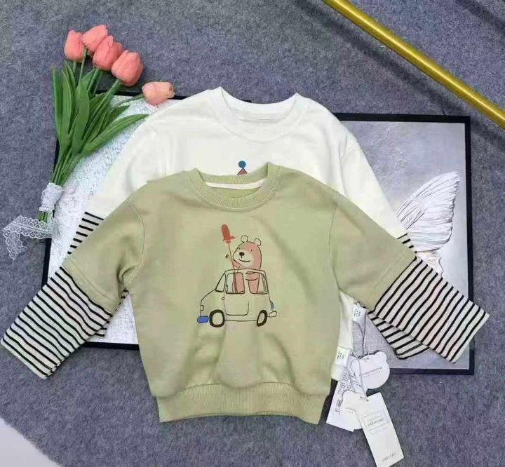 全清5.9,母婴店下架春装宝宝洋气时髦超萌卡通假两件纯棉T恤卫衣,如图1图2整款两个图案两个色,全部原高品质独立包装吊牌,码数80到130,共3000件左右,分货+1