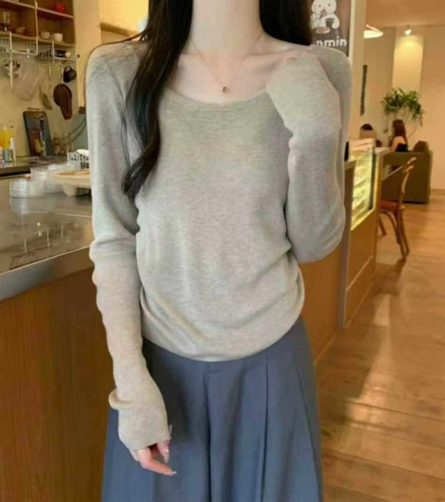 秋冬新款法式气质设计款弹力修身显瘦针织套头羊毛衫,...