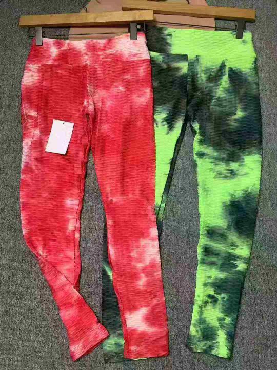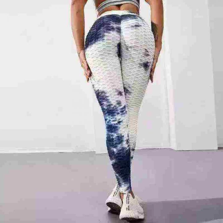 4.5清588件女高腰扎染性感提花瑜伽健身蜜桃翘臀泡泡裤女收腹提臀打底长裤户外跑步健身修身运动 码数S-ⅩL 独立包装