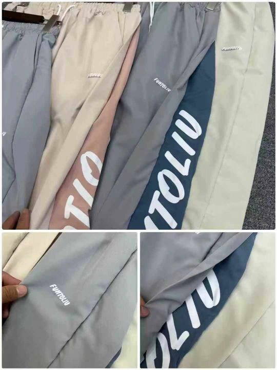 523条,港风休闲裤女2025夏季新款宽松阔腿裤薄款抽绳束脚拼接学生运动裤,独立包装,码数S-3XL,全清7.8元,分货➕0.5