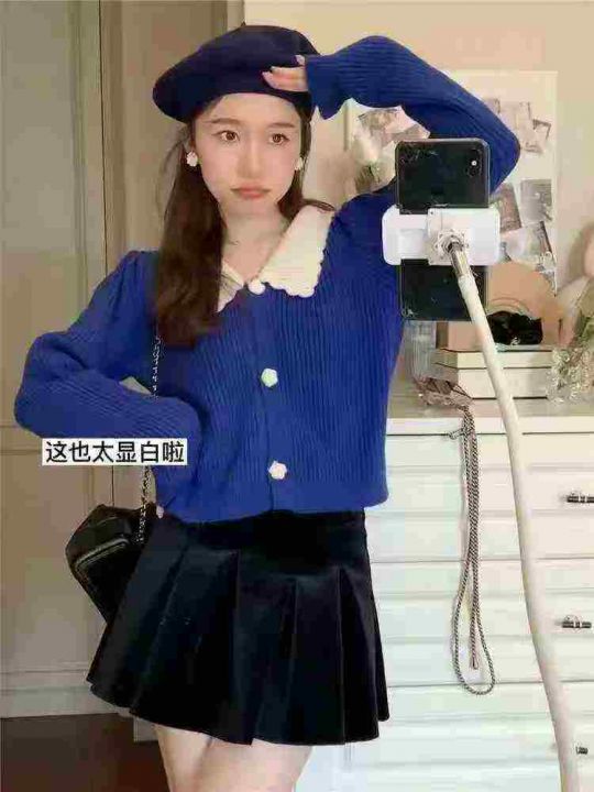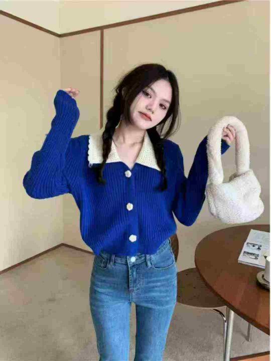 全清13.8,韩版毛衣女2025秋季复古慵懒温柔娃娃领针织开衫外套短款上衣,单款单色,均码60件,不分货
