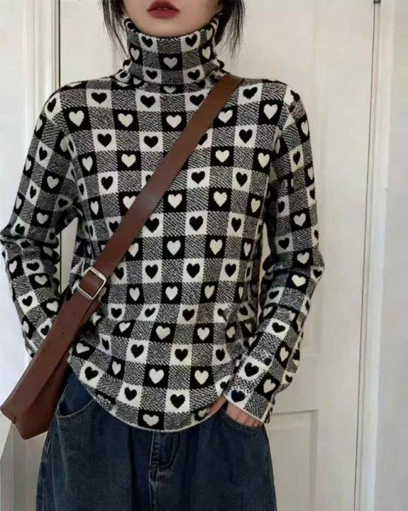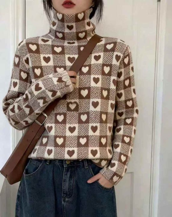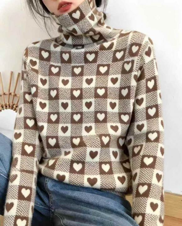 秋装新款韩版洋气设计感爱心高领打底包芯纱套头毛衣,...