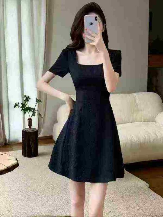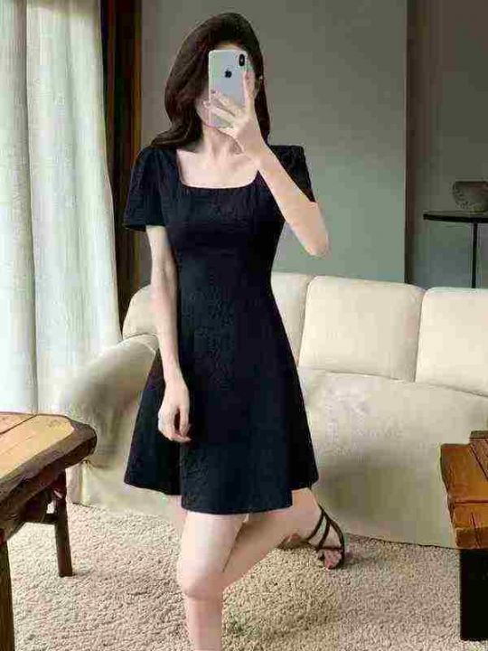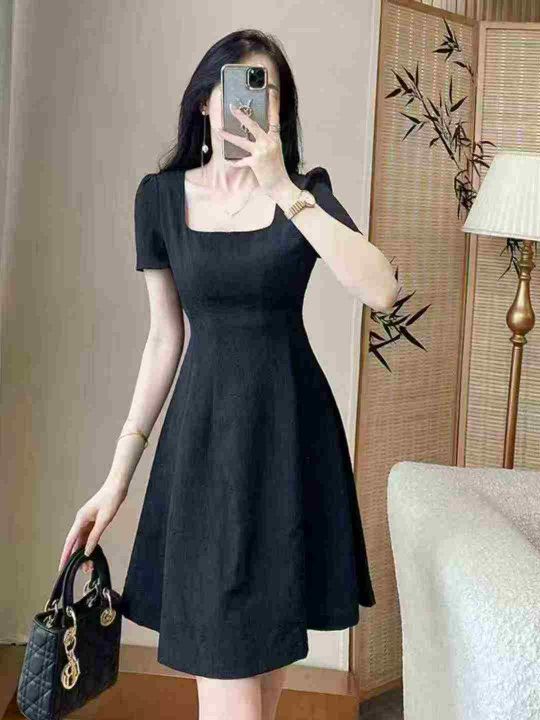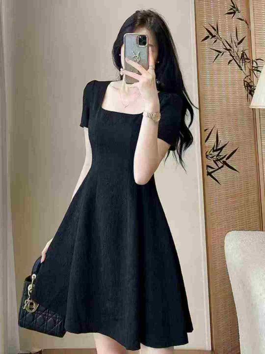 全清14.8,2025新款法式气质方领黑色连衣裙子女装夏季显瘦小个子蓬蓬小黑裙,单款单色,均码43条