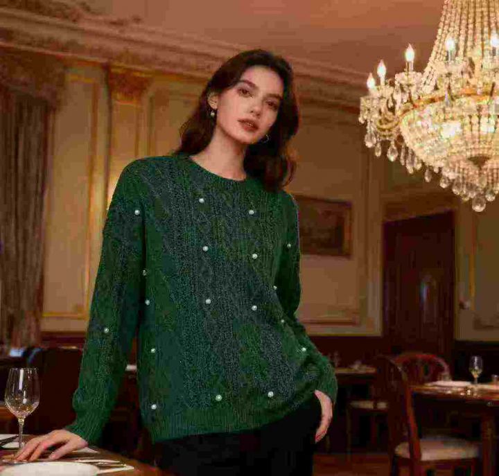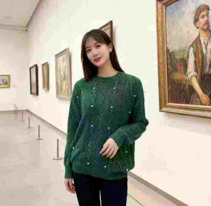 全清10.9,女装秋季2025新款法式菱形针织钉珠宽松毛衣百搭显瘦藏肉休闲上衣,单款单色,均码47件,不分货。