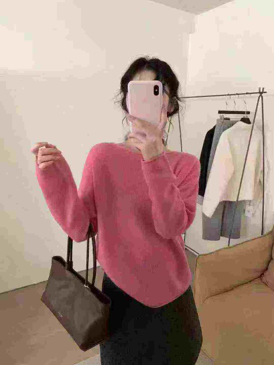 全清10.9,爱情魔鬼鱼 纯色圆领长袖针织衫女2025秋冬新款宽松百搭上衣,单款单色,均码47件,不分货。