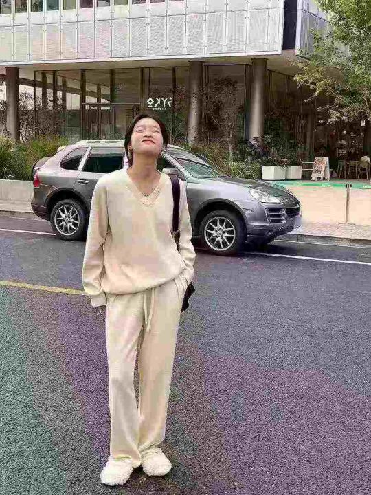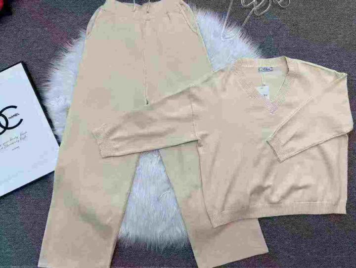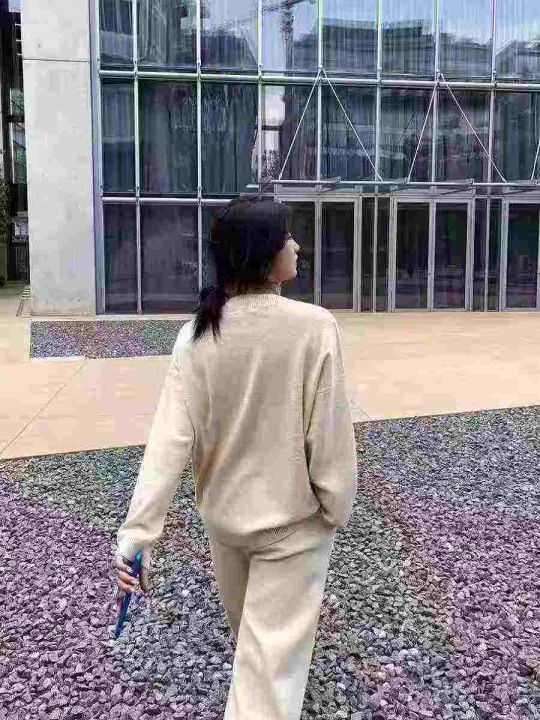 全清22.8,UM休闲慵懒羊毛针织套装女秋冬2025新款V领毛衣阔腿裤时尚两件套,单款单色,均码24套,不分货。