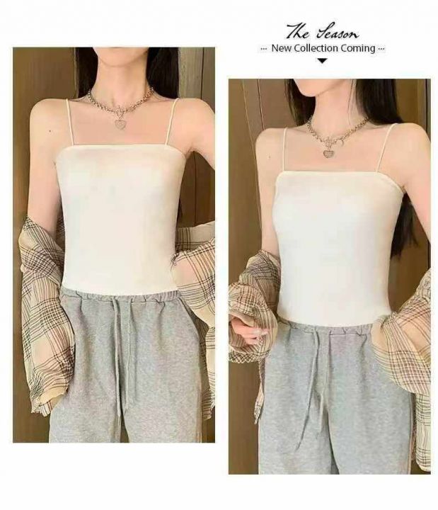 品牌原单夏秋季新品净版百搭95拉架棉吊带背心,白色为...