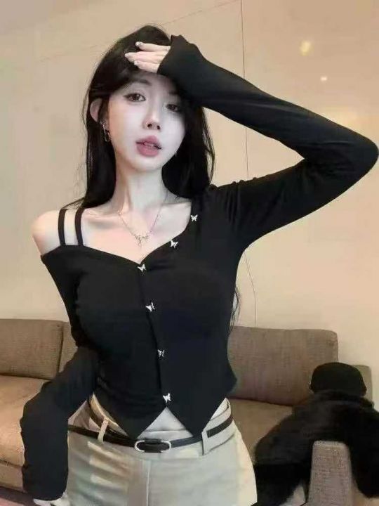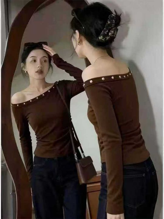 13.8第二批辣妹靓妹长袖上衣合集!直接戳中审美!羽毛拼接、露肩别针、丝巾装饰、抽褶收腰+斜扣设计,黑/棕/浅蓝/奶杏多色齐活~每款都藏着小心机,显瘦又勾人,秋冬内搭叠马甲、外穿配裙裤都出彩,甜酷氛围感直接拉满,靓妹衣橱刚需款!